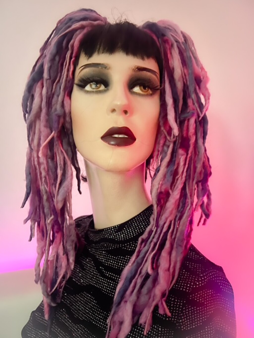 Set of dreadlock wool hair falls in a striking shade of Blue tone Violet. Made from the sofest hand dyed 100% wool. Avaliable as a double waist length set, bust length or single hair fall. Pictured is Option 1-Waist Length. Change your hair from ordinary to amazing with these dread wool falls that are perfect for creating that Cyber, Lolita or Gothic hair look. Drop us a line at mail@hairfromhell. com with an custom colour orders that we'll happily make up for you usually at no extra cost.